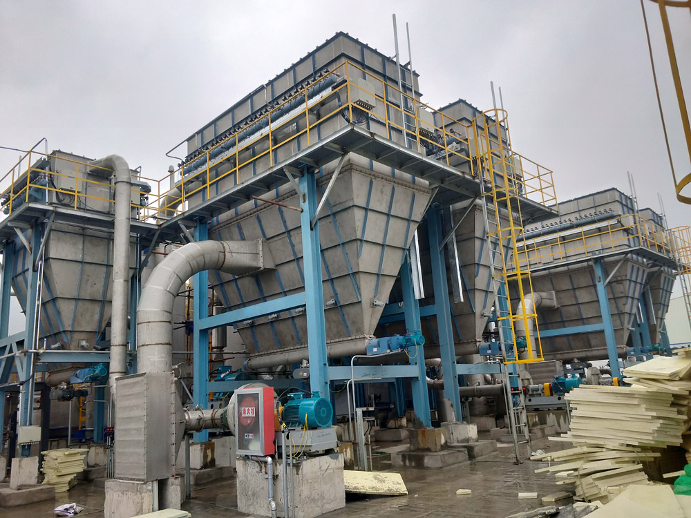 3.設備成套供應、熱源自由選擇:我廠氣流干燥設備成套供應,基本型由空氣過濾器、加熱器、加料器、干燥管、風機、旋風分離器組成。用戶可根據需要添置除塵器或其他輔助設備。在加熱方式選擇上,氣流干燥設備有較大的適應性,用戶可以根據所在地區的條件選用蒸汽、電、熱風爐加熱、同時又可根據物料耐熱溫度(或熱風溫度)選擇:≤150℃時,可選用蒸汽加熱;≤200℃時,電加熱(或蒸汽加熱,電補償或導熱油加熱);≤300℃時,燃煤熱風爐;≤600℃時,燃油熱風爐。