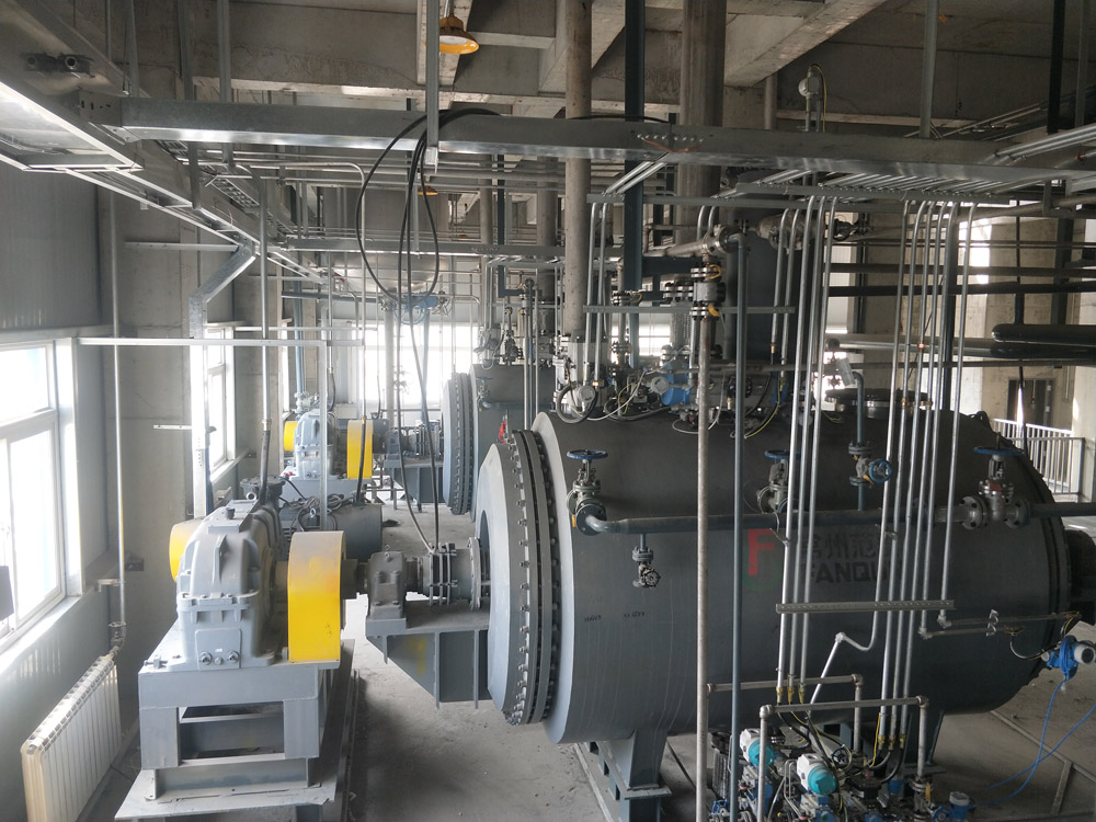 耙式真空干燥機是利用物料中的水份在真空狀態下沸點降低的特點來進行干燥的設備。該設備用蒸汽夾套間接加熱,水份受熱蒸發并被及時抽除。在干燥機殼體內部,耙齒通過傳動軸帶動,耙齒端與軸線設計有一定角度,主軸通過正向反向轉動使物料沿軸向移動以利于干燥及出料。