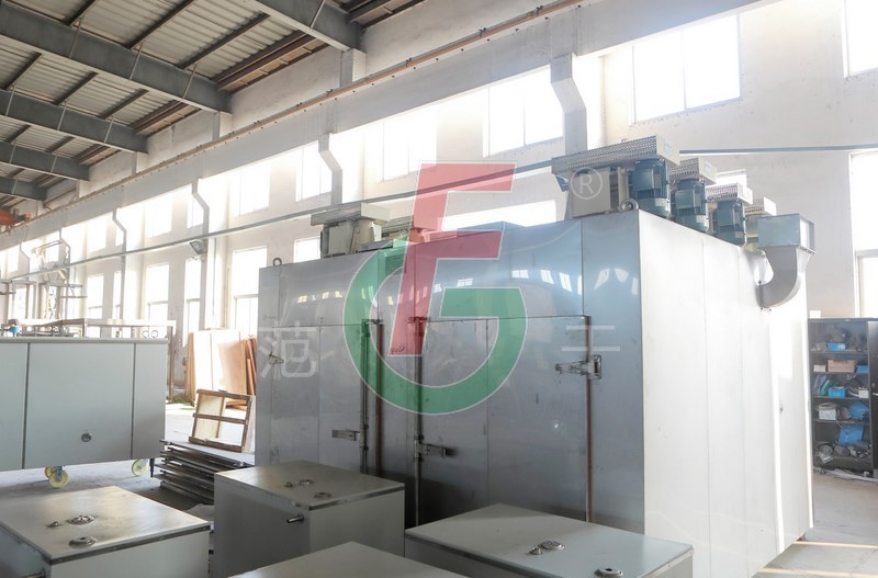 2、利用強(qiáng)制通風(fēng)作用,箱內(nèi)設(shè)有可調(diào)式分風(fēng)板,物料干燥均勻。熱源可采用蒸汽、熱水、電、遠(yuǎn)紅外,選擇廣泛。