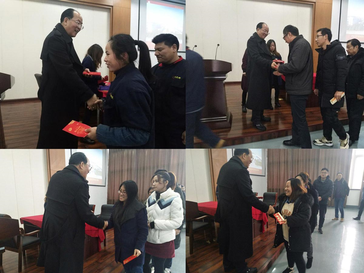 董事長范炳洪為感謝全體員工一直以來對公司的辛勤付出和努力,給每個員工頒發了現金大紅包和新年祝福并對還奮斗在一線的員工表示親切的問候和紅包獎勵