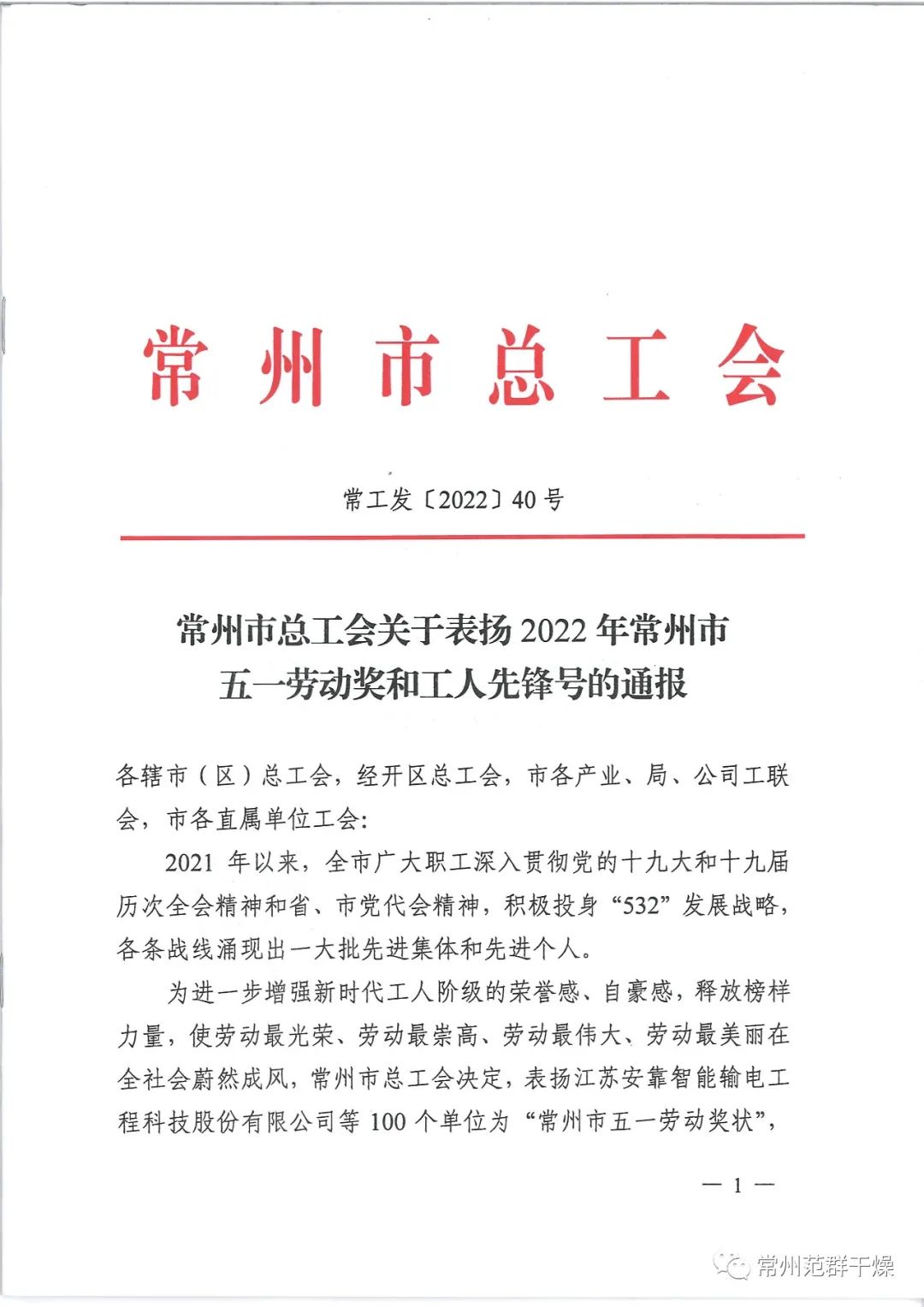 “常州市五一勞動(dòng)獎(jiǎng)和工人先鋒號(hào)”是常州市總工會(huì)授予企事業(yè)單位的最高榮譽(yù)。常州范群將化榮譽(yù)為動(dòng)力,以獎(jiǎng)狀為任務(wù),不忘初心、牢記使命,開(kāi)拓奮進(jìn)、攻堅(jiān)克難,實(shí)現(xiàn)疫情防控和生產(chǎn)經(jīng)營(yíng)“雙戰(zhàn)雙勝”等各項(xiàng)工作。