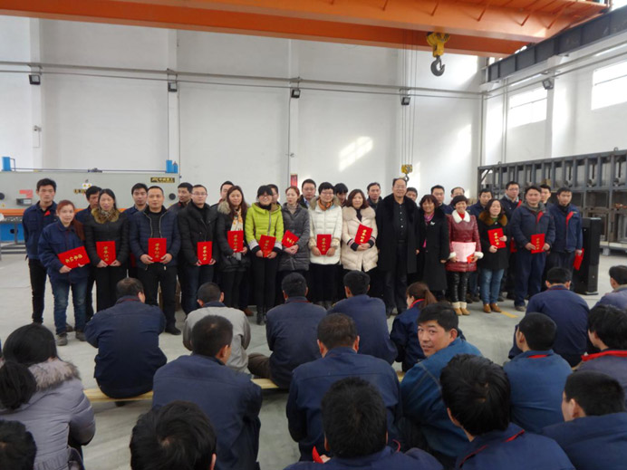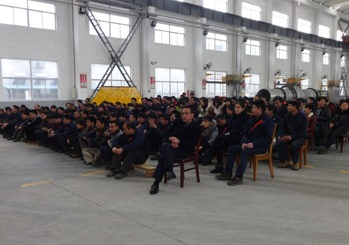 2015年3月2日下午3點,在公司(常州范群干燥設備有限公司)的重型車間里,召開2015年全體職工大會,公司董事長范總和各部門領導及全體員工出席了大會。會議由企管部蔡部長主持。