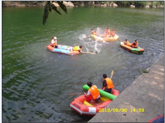 第二天早餐后我們來(lái)到了華東地區(qū)最后一篇原始森林、國(guó)家級(jí)野生動(dòng)植物自然保護(hù)區(qū)石臺(tái)牯牛降,游覽參觀國(guó)家級(jí)自然保護(hù)區(qū)、AAAA級(jí)景區(qū)石臺(tái)牯牛降龍門(mén)風(fēng)景區(qū),游覽“嚴(yán)家古村” 居住著東漢著名隱士嚴(yán)子陵的后裔,典型的徽州民居古建筑保存完好。村中有老磨房、古祠堂和寫(xiě)著紅軍北上抗日直至大躍進(jìn)、文化大革命等各個(gè)時(shí)期標(biāo)語(yǔ)的“標(biāo)語(yǔ)墻”;“情人谷”三面環(huán)山,巖壁陡峭,茂林修竹、泉水淙淙,是情侶眷屬的好去處;“四疊飛瀑”象一匹碩大的四疊白練直掛崖壁,如雪似玉,曲折回環(huán),似從天來(lái)、蠟燭峰等景點(diǎn);龍門(mén)大峽谷:河馬戲鱷、“龍門(mén)潭” 潭水青碧,峽谷幽深,怪石遍布,古木如蓋,有百丈巖、滾石灘等景點(diǎn),實(shí)為大自然創(chuàng)造的“無(wú)聲的詩(shī),立體的畫(huà)”。 下午赴中國(guó)境內(nèi)最美的河流——秋浦河怪潭漂流景區(qū),在素有“詩(shī)之河”之美譽(yù)的秋浦河上游,河水常年澄碧清澈,兩岸古柳依依,峻峰林立,美景甲天下。全程采用皮劃艇體現(xiàn)參與性和互動(dòng)性讓大家更深入的親近大自然、體驗(yàn)大自然,各位同事時(shí)而泛舟前行,時(shí)而駐足打起水仗,笑聲連連不斷。