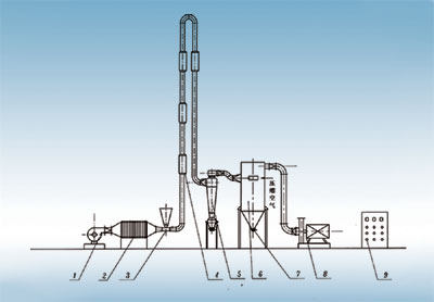 在干燥操作中主要控制干燥機中的空氣流量、空氣進口和出口溫度、加料量。其中加料量做為從屬變量進行調(diào)節(jié)。